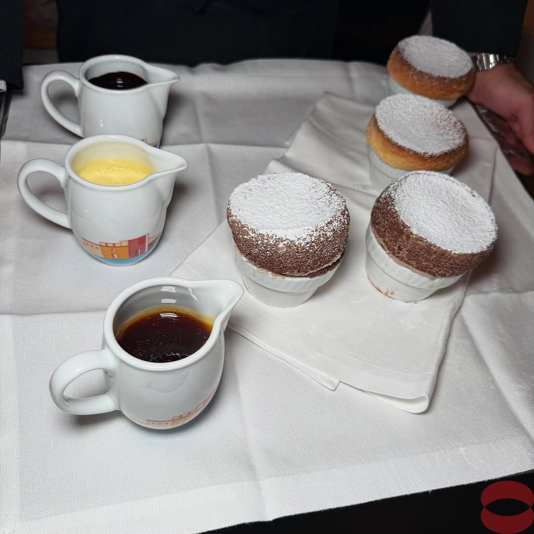 Le Grand at the iconic Hotel Cala di Volpe in Porto Cervo. The dining hall was designed by French architect Jacques Couëlle using curving, irregular plaster walls and wooden sculptures. The menu features Mediterranean classic like seafood and handmade pastas. There are a few modern items like ceviche as well. Service is formal but efficient.