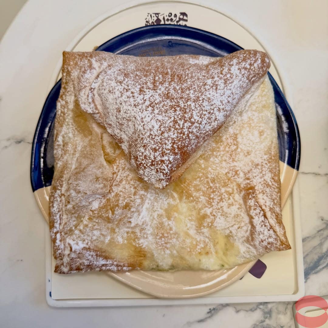1860 Cafe by Zalatimo. The Zalatimo Brothers brand began in Jerusalem in 1860. They are known for their signature Arabic baklava and other Arabic sweets. It is the most popular dessert shop in Jordan. The cafe serves the similar concept but the bake fresh Kunafa and Muttabaq. a versatile pan-fried or baked stuffed pastry also known as murtabak or martabak in other regions. Mutabbaq means “folded” in Arabic, referring to how the pastry is prepared. Jordanian versions include both savory and sweet fillings. The Mutabbaq stood out as excellent, while the Kunafa was satisfactory but unremarkable.