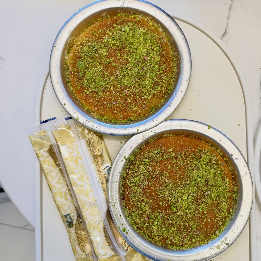 1860 Cafe by Zalatimo. The Zalatimo Brothers brand began in Jerusalem in 1860. They are known for their signature Arabic baklava and other Arabic sweets. It is the most popular dessert shop in Jordan. The cafe serves the similar concept but the bake fresh Kunafa and Muttabaq. a versatile pan-fried or baked stuffed pastry also known as murtabak or martabak in other regions. Mutabbaq means “folded” in Arabic, referring to how the pastry is prepared. Jordanian versions include both savory and sweet fillings. The Mutabbaq stood out as excellent, while the Kunafa was satisfactory but unremarkable.