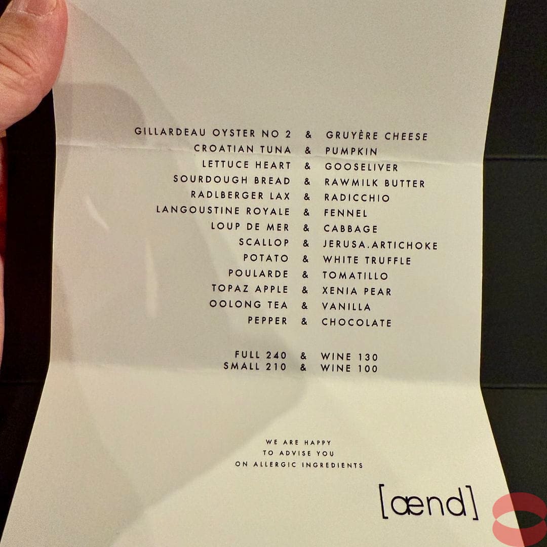 Aend is a fine-dining restaurant in Vienna known for its modern take on Austrian cuisine. Interior is modern and has an open-kitchen concept. Two set menus: long and short. Everything was presented beautifully. Some hits and misses for fine dining, but overall a delectable experience.