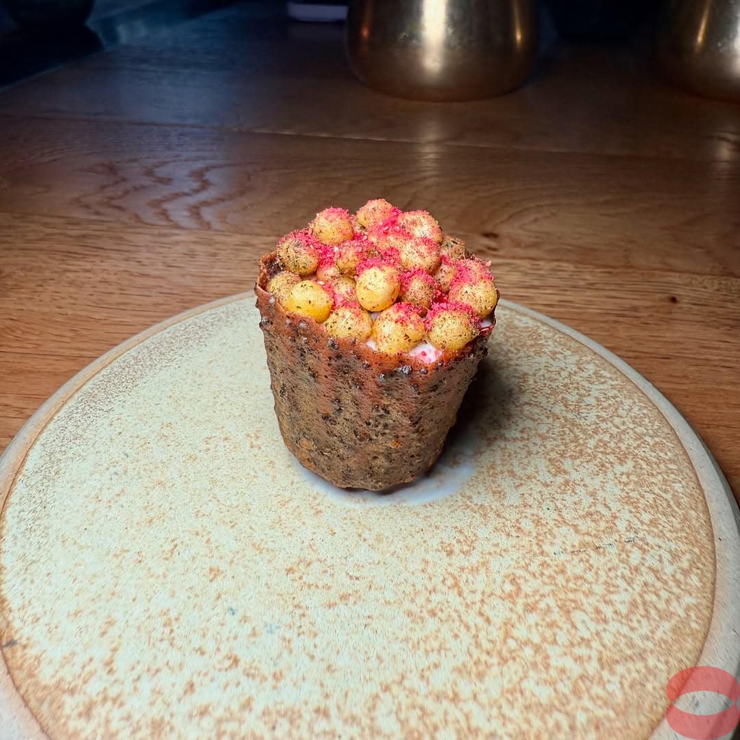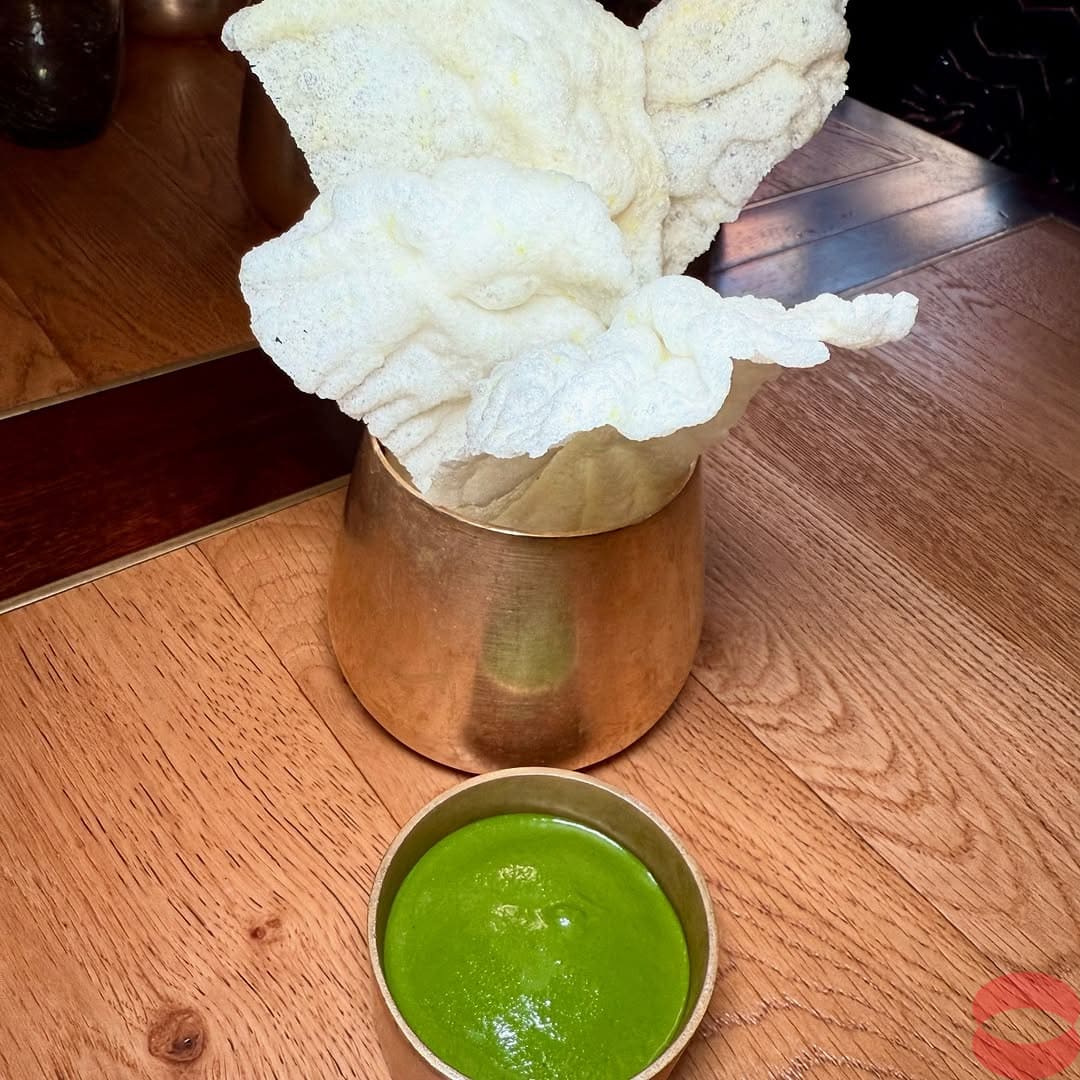 Bibi is a contemporary Indian restaurant from Chef Patron Chet Sharma. After completing a PhD in physics, he went on to follow his passion and work in kitchens like The Ledbury, Moor Hall and Gymkhana before opening his restaurant. The two tasting menus are named atter his grandmothers (bibis), Kamal and Ranjana. This is not your classic Indian restaurant. You will not find here the classic Indian dishes that you are used to like Biryani, Dahl, curries or breads. And they serve no Coke neither chamomile tea! I don’t understand when restaurants force their drinks on customers. Where is the freedom of choice!