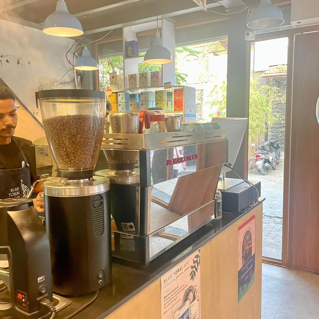 Blue Tokai Coffee Roasters is a popular coffee brand known for its specialty beans and artisanal roasting methods. They offer a range of freshly brewed coffee and expertly crafted blends in a cozy, contemporary setting.