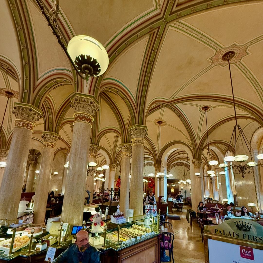 Cafe Central, one of the most iconic cafés in Vienna, known for its grand interior and historical significance. It was a favourite spot for intellectuals and artists like Sigmund Freud and Leon Trotsky. Long lines to enter. I found it to be very touristic and average at best.