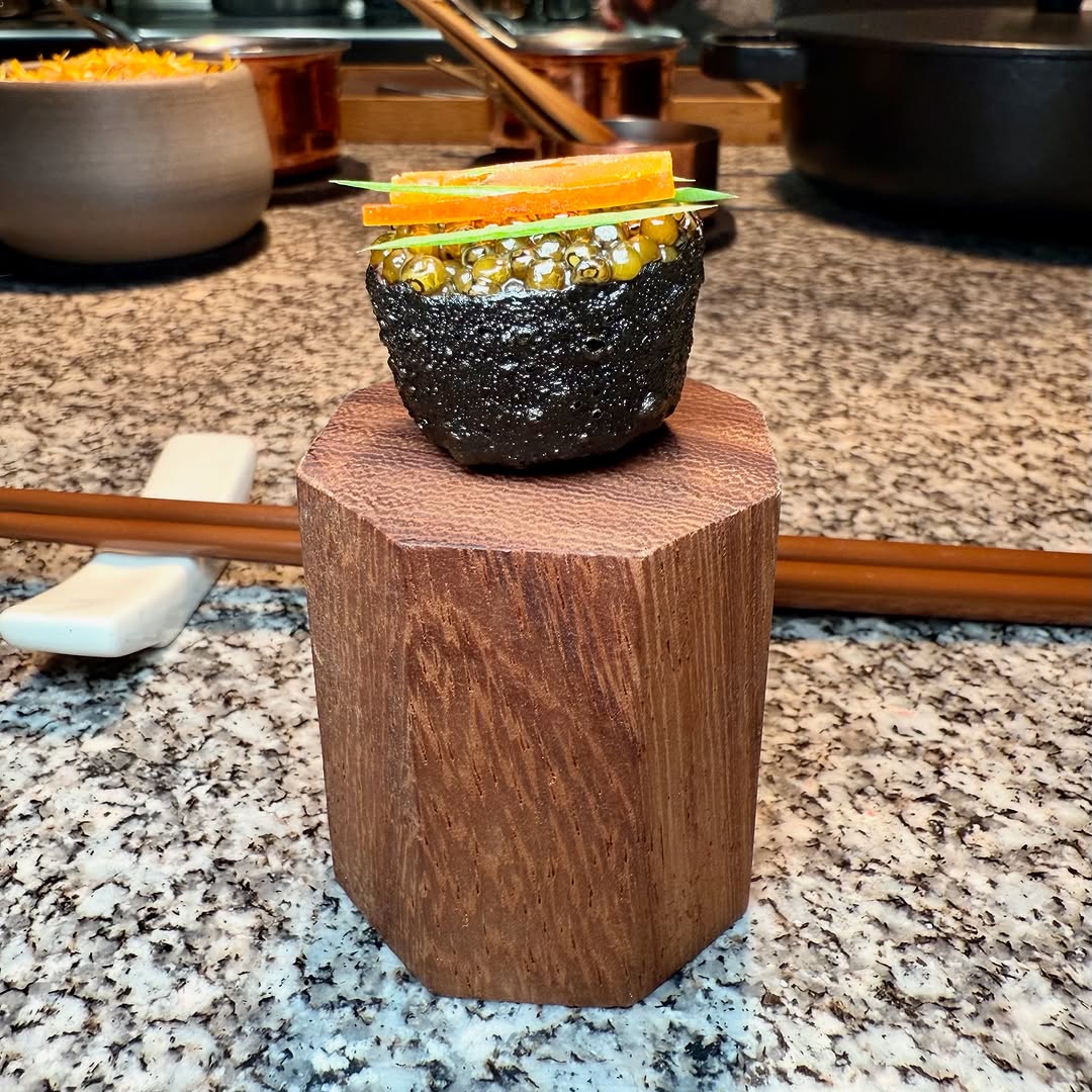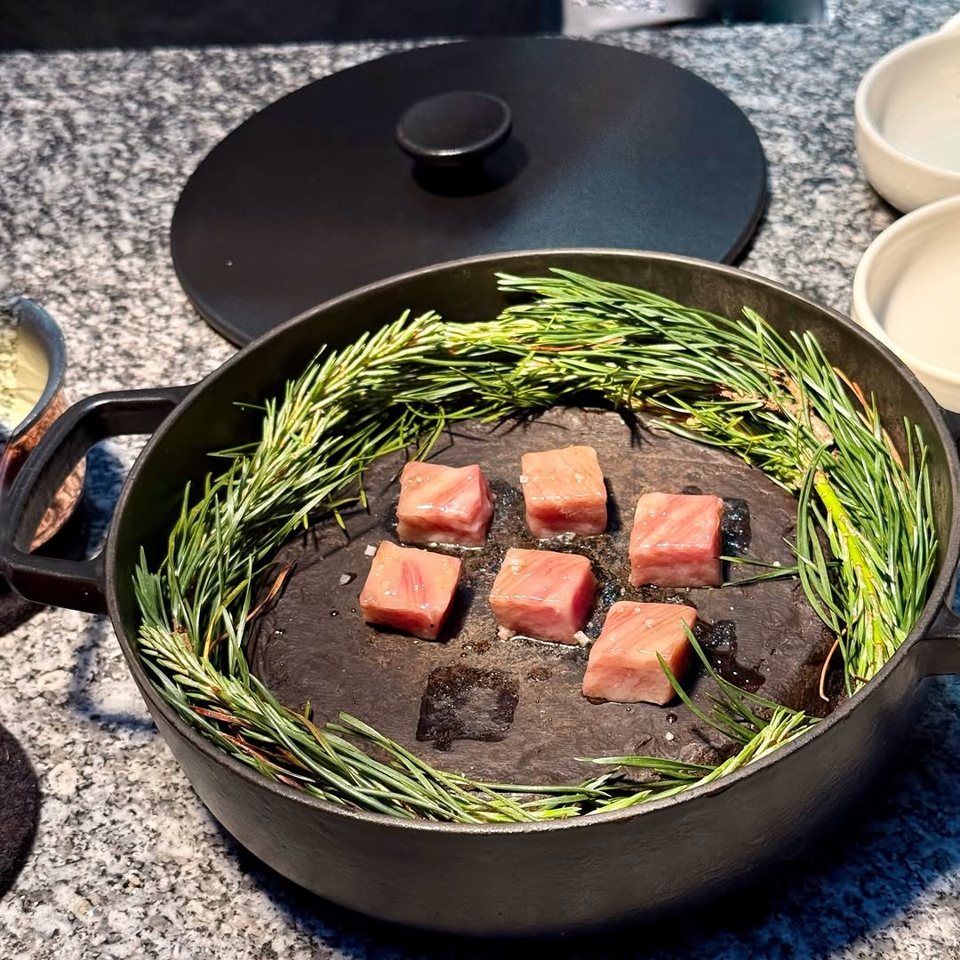 Cycene, named after the Old English word for “kitchen”. Cycene is contemporary British restaurant. The current Head Chef is Taz Sarhane known for his innovative approach to British cuisine. He has developed a passion for ingredient preservation techniques like fermenting and dry-aging. The menu format is tasting menu only of ten courses, with just 15 customers at capacity in total. The design space is intimate with details include wooden panelling.