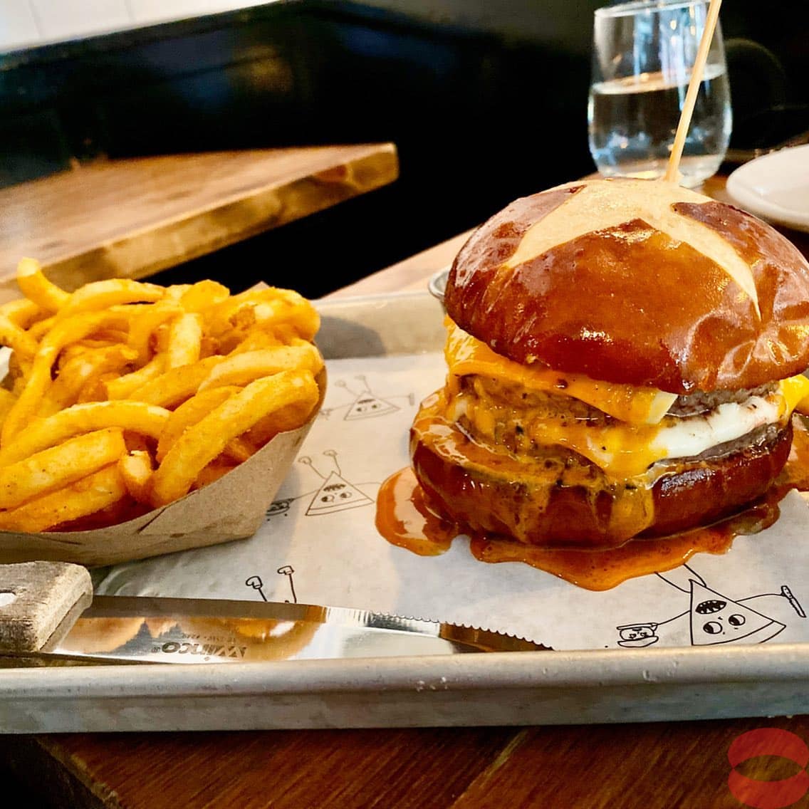 لمحبى البرغر. لا يفوتكم Restaurant Emily in New York City. برغر بخلتة سرية. The original restaurant offers limited numbers and usually ends quickly. But the burger is available in the other branch in West Village Finally I managed to visit Emily. Claimed to be the best burger in New York. A dry-aged patty covered in year-old Vermont cheddar and caramelized onions and served on a pretzel bun. Something that “shouldn't work, but it does. The secret is in the sauce. Surprisingly light. My rating is Excellent.