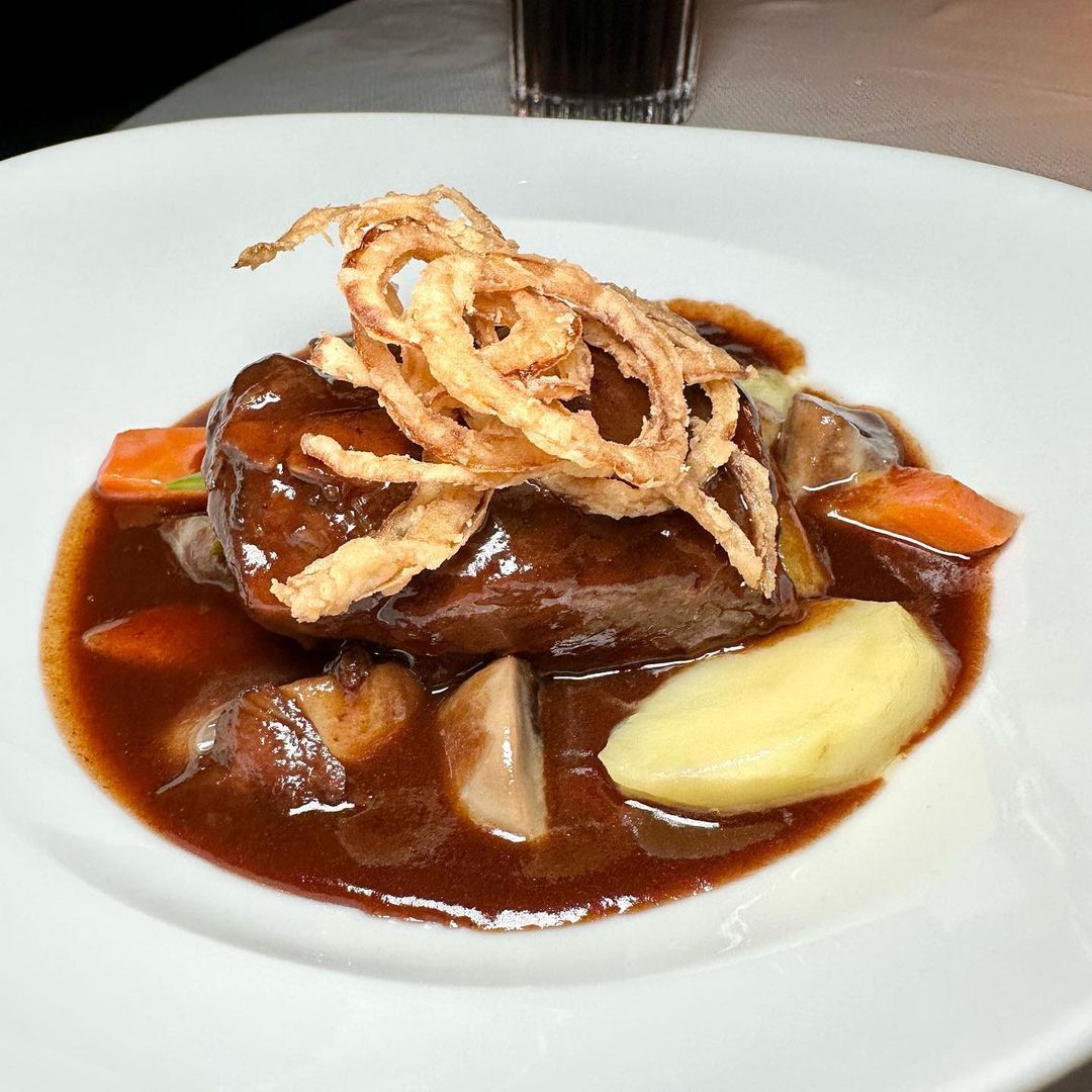The original one in Paris has been welcoming guests since 1899.The brasserie features chic and elegant decor, red velvet armchairs and wood panelled walls, reflecting Parisian style ambience. The dining area is also quiet with no loud music as is the trend in other restaurants in Dubai. This allows for calm conversation with fellow dinners on the table.Service was good but the waiters looked exhausted and tired.The menu of the Brasserie (there is a cafe as well) features classic French items like the escargot, beef tartare and other items.The The starters outshined the mains in my opinion. The beef Tartare was bland in my opinion. The mushroom salad was very good. The steak, the veal blanquette and chicken were good. The profiteroles were very good and the highlight of the dinner.