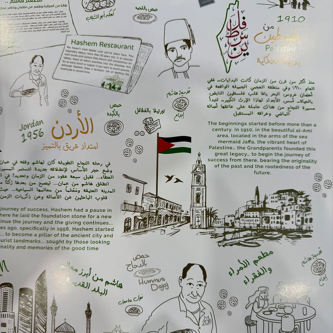 Hashem Restaurant is a fast-food chain, famous for its Hommus, Falafel, and Fool. It is also considered a tourist spot in Amman-Jordan. It was first founded by Hashem Saber Al-Turk in 1956.