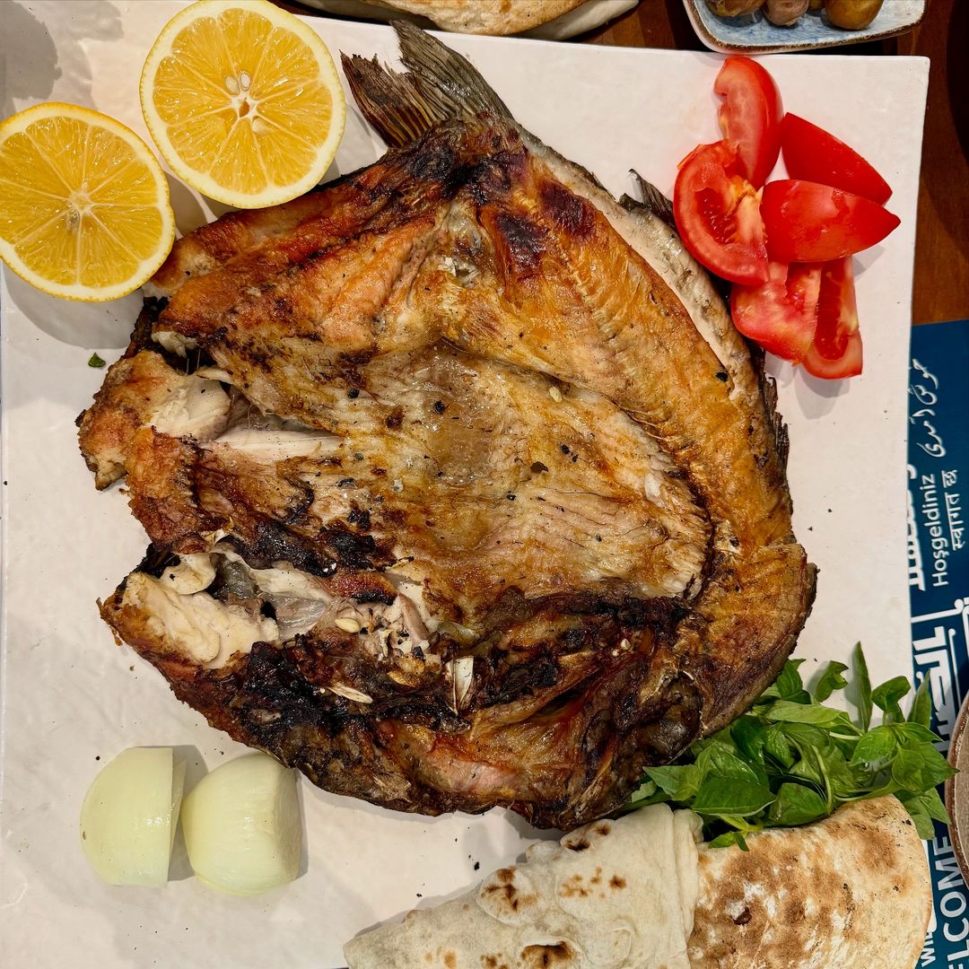 Hikayat Alsayad, a new Iraqi restaurant serving Masgouf fish. Masgouf (in Arabic المسكوف) is a Mesopotamian dish consisting of fresh water seasoned, grilled carp. It is often considered the national dish of Iraq. I have tried it in London and in Dubai but trust me there is nothing like trying it here. It is so fresh and fatty. Hikayat Al Sayad is a new restaurant that has just opened in Baghdad. The bread is so delicious you want to eat it on its own. They serve dates after fish so that you don’t get thirsty as fish makes you thirsty. Never knew this before.
