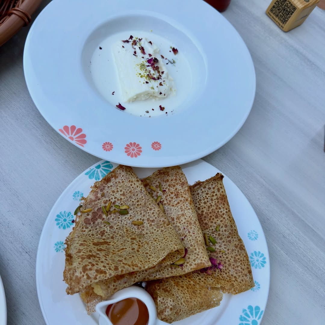 Kashtat Amina, Sharja, UAE. A home grown concept by Chef Mariam Almansoori serving in Emarati cuisine. Chef Mariam is an cclaimed Emirati chef and founder of Montauk Hospitality Group. The decor and ambiance is relaxing and reflects Emarati heritage. We came for breakfast and the menu features classics like Egg & Tomato, Keema Hamsa, Balaleet. Bread is baked fresh.