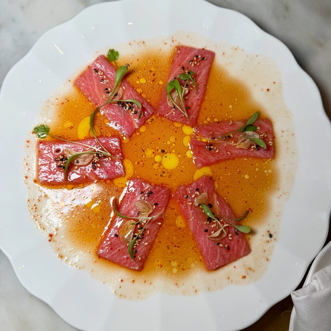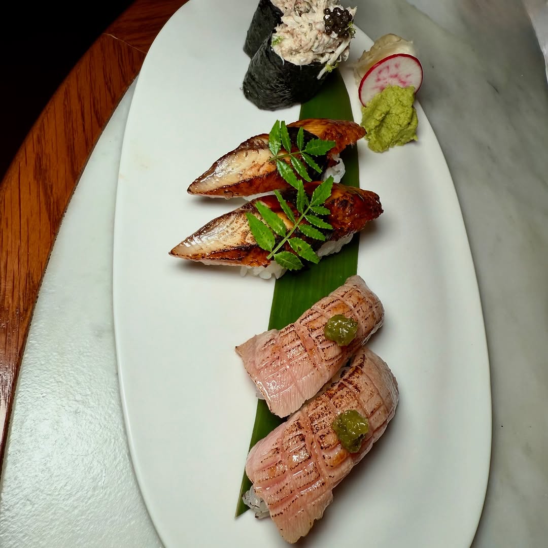 KIRA, a mix of Japanese and Mediterranean dishes. The interior, designed by Verhaal Studios, is elegant, chic, and impressively grand. Starters and desserts were excellent especially the crème caramel and Karak brioche. The sushi, however, was a letdown, particularly the maki roll. I would recommend focusing on the Mediterranean part of the menu. Service started off attentive and polished, but completely declined as the place got busy.