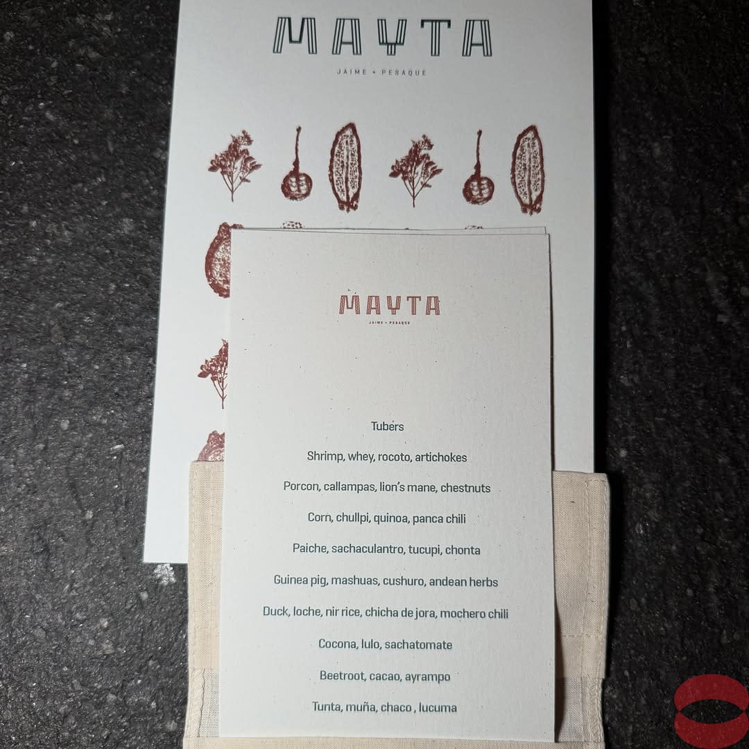 Mayta Restaurante, the flagship restaurant of chef Jaime Pesaque who worked in some renowned restaurants like El Celler de Can Roca before returning to his home country of Peru. Mayta means “Nobel Land” in the Aymara language. The offering is both à la carte and a multi-course tasting menu focusing on Peruvian earth ingredients from different regions of Peru. Some of the dishes like the mushroom and the bread didn’t live up to the visual artistry. Service was solid and professional.