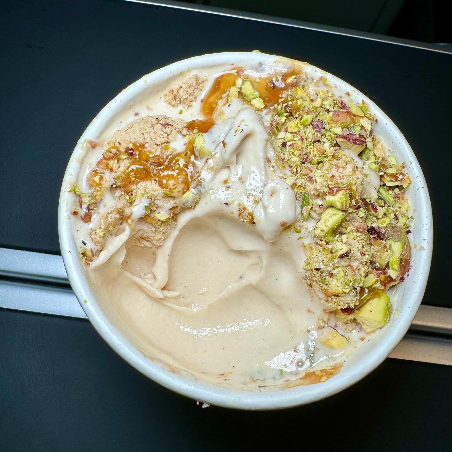 Mitzumami This is not your usual Shawarma. The bread and the ingredients are different. They use quality meat that’s cut thicker and a different type of thick bread pocket. Personally I liked the meat more than the chicken, although I had the spicy one. I also liked the thick bread as it holds well and does not become soggy like the Saj bread. I wish it is served hot rather than warm. I also liked the Falafel. 🥙 very good. The Rahash ice cream was wow🤩
