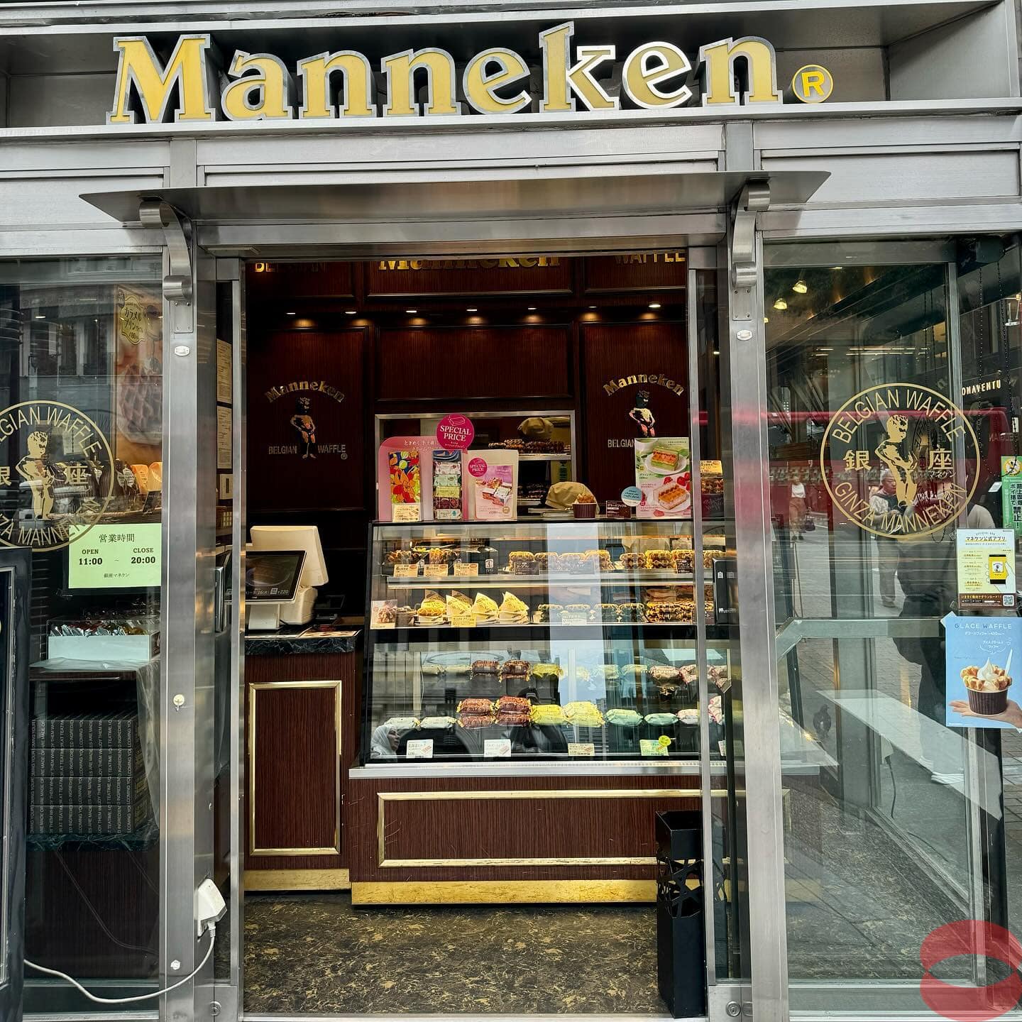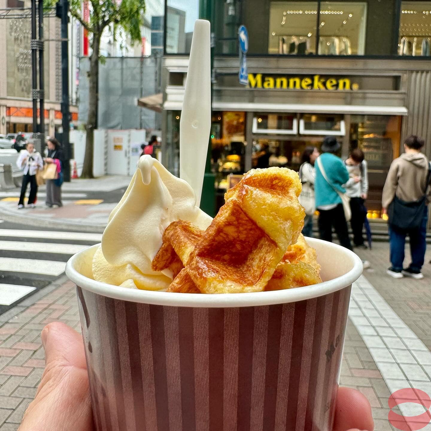 Manneken Belgian Waffle, ask for Atsui (hot from oven). They have different flavours. I went for the plain and with chocolate.