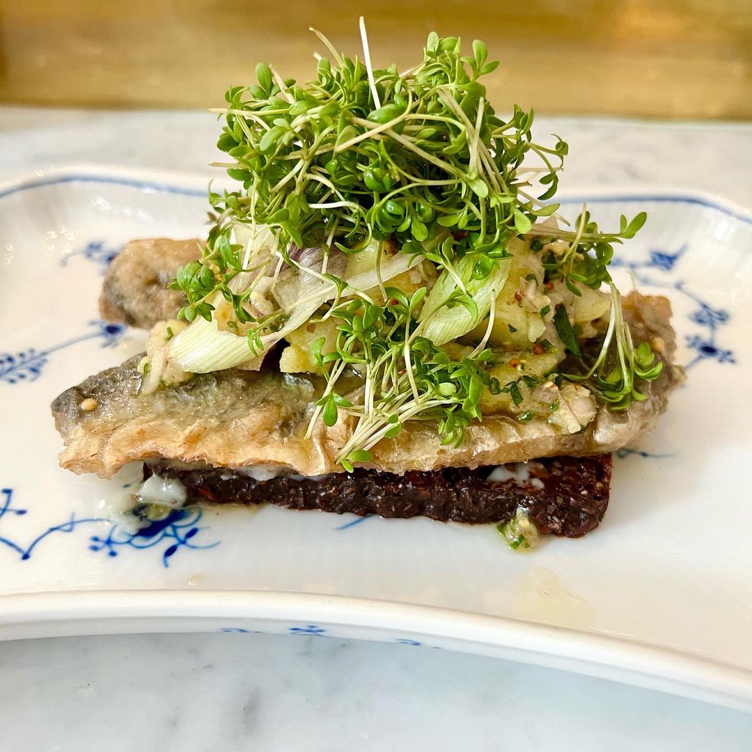 Restaurant Møntergade in Copenhagen, Denmark, is a classic Danish eatery that serves traditional smørrebrød (open-faced sandwiches) and modern takes on Danish cuisine in a cozy, elegant setting.