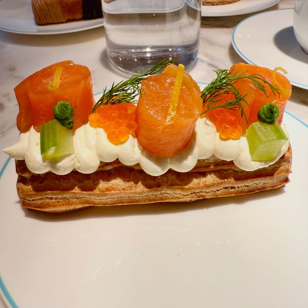 The Connaught Patisserie by Nicolas Rouzaud is a daytime cafe and patisserie serving a selection of handmade sweet and savoury treats. The Patisserie was designed by London-based Ab Rogers Design. The idea was to create a chic Patisserie that “would take its inspiration from a jewellery box and aim at reflecting the exquisite delicacy of the cakes”. All creations are made by Nicolas Rouzaud, a french Pastry Chef who worked in some of the top hotels in Paris and London. The Salmon éclair was both creative and delicious, a delightful treat. Their renowned Trio au Chocolat certainly lived up to its reputation. However, the St. Honoré was less impressive. I still need to try the Pain au Chocolat.