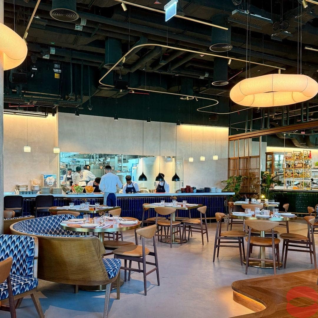 Lighthouse in Dubai Hills Business Park. A homegrown eatery offering a fresh take on Mediterranean cuisine. The menu is divided into sections including Starters, Raw Bar, Pizzettas, Pastas, Mains, Sharing Mains, Sides. The place features elegant and relaxing ambience and decor.