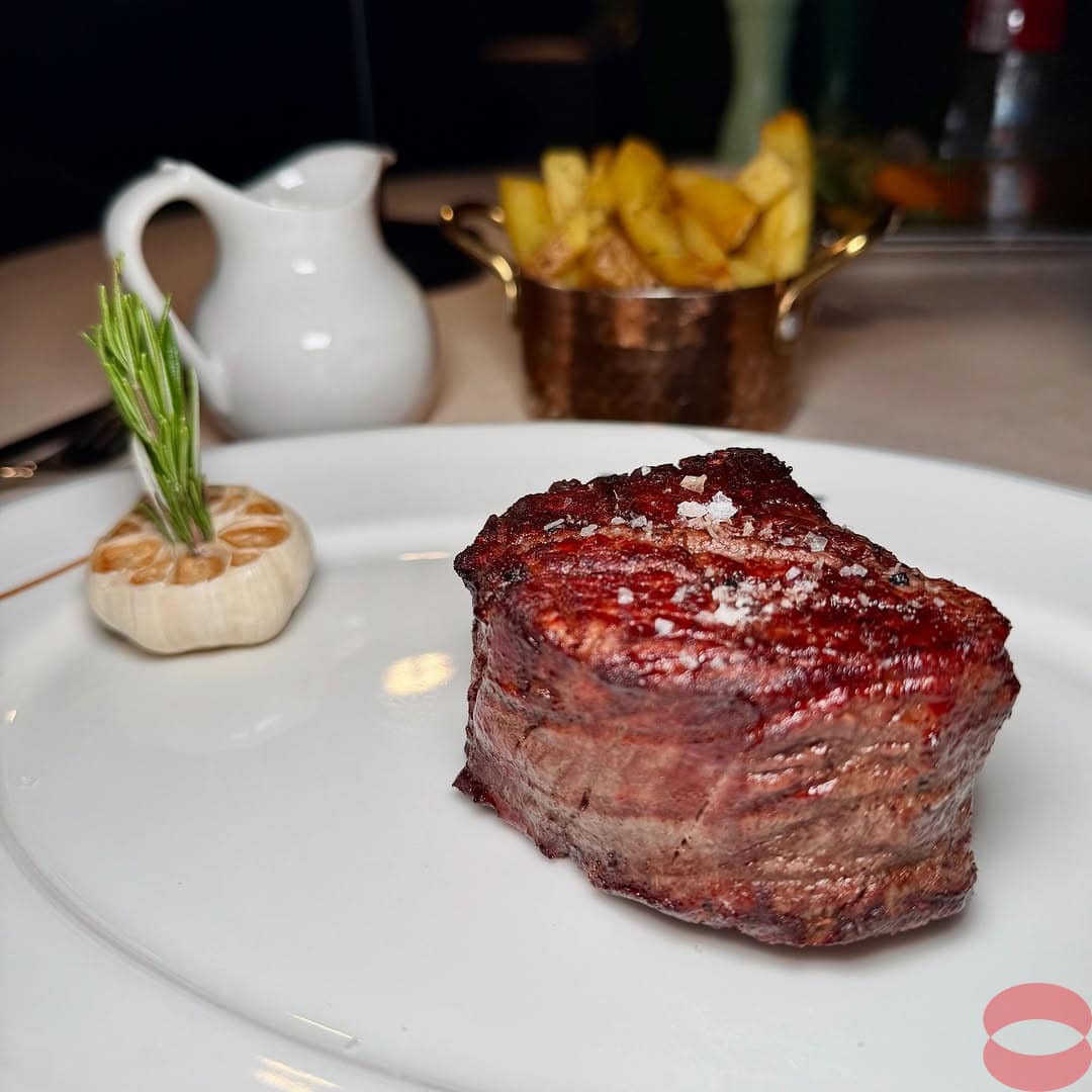 Three Cuts, a classic steakhouse. The decor is elegant with double heigh ceiling. The menu features classics like Caesars salad and prawn cocktail in addition of course to the steak cuts. The steaks choices are limited to six cuts. The meat was cooked as ordered which is not something many restaurants in Dubai perfect.