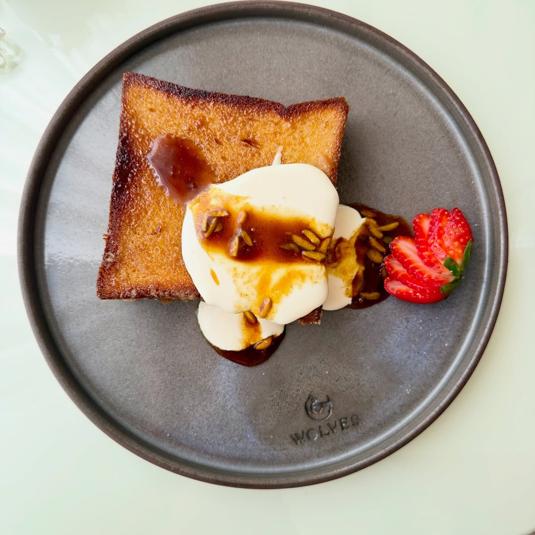 Wolves Cafe, Sharjah, UAE. A home grown cafe and restaurant. I came here for breakfast. They have collaborated with Hesa Al Khalifa to offer few innovative local items. I tried the Emirati Sunrise Toast and the Bahraini Halwa Toast and found them both to be very good.
